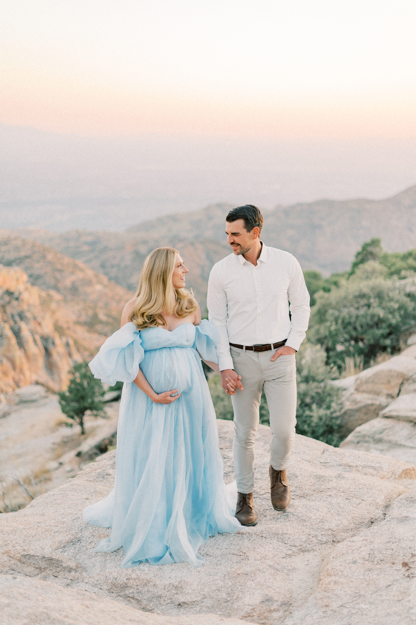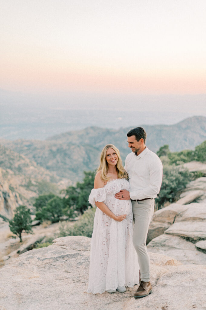 Maternity sessions are a beautiful way to celebrate the incredible journey of pregnancy, and what better backdrop than the stunning vistas of Windy Point at Mt. Lemmon in Tucson, Arizona? With its breathtaking views, diverse landscapes, and tranquil atmosphere, this location offers the perfect setting for capturing those precious moments before the arrival of your little one. Plus for this couple it was such a full-circle moment because their first date was at Windy Point.